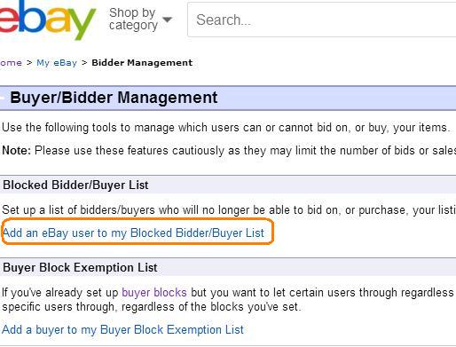 Add an eBay user to my Blocked Biddder/Buyer List